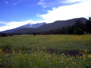 Photo #3; wildflowers, Arizona high country, and the Sacred Peak near Bismark Lake. Photo by Coach.