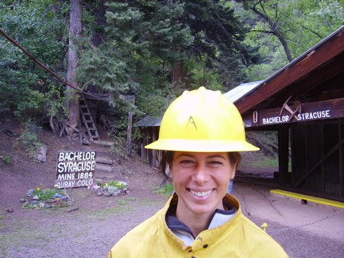 after we broke camp and pumped our SUNRIDER herbs for the day, we were planning to go rock climbing at the local crags of Ouray, however, that gorgeous blue sky soon became a gorgeous thunderhead and a refreshing rain began to fall, drowning our climbing plans. however, as any seasoned wandering WF Yogi knows, being able to Adapt To Circumstances is what makes traveling so fun! what a perfect opportunity, i thought, to do something i have always wanted to do; explore a real mineral mine…so, i convinced my faithful companion into signing up for the Bachelor-Syracuse Mining Tour…