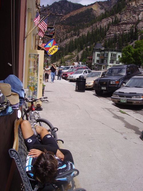 Ananda caught me inspecting my inner eyelids here as i crashed on a sidewalk bench in one of my most beloved of all San Juan mountain towns; Ouray. you and i will be visiting Ouray this winter for ice climbing!