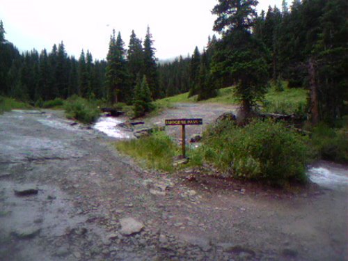 (i stopped here to wipe mud from eyes…this is looking back UP toward the summit from the Ouray Side. the reads simply; “Imogene Pass”.)