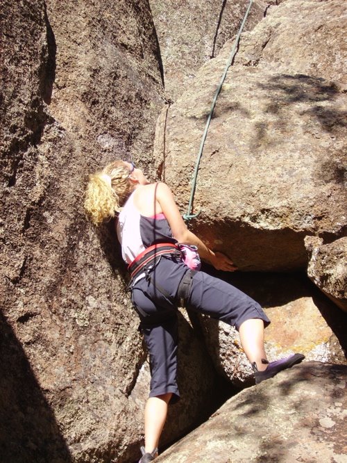 Challenged by depth perception, two things seemed nearly impossible to Student Coop; rock climbing and mountain biking. Well, she came to the right Temple to overcome those Fears. “The best way out is straight through.” Tapasaya, baby. To straighten by fire.