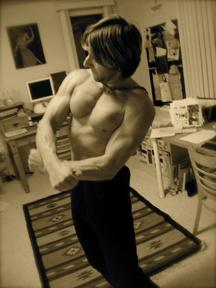 this muscle pump came from only 5 minutes into my “OFFICE WARRIOR WORKOUT” using only old school dumbbells. and, remember, i am only several days into my off season from bike racing against the best sport-specific bike racers in the state. that is what i so LOVE about the Practice of WF;