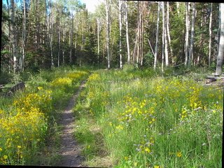 there was, where the tree had snapped off, a tiny space of about four inches which hovered off the right edge of the trail.