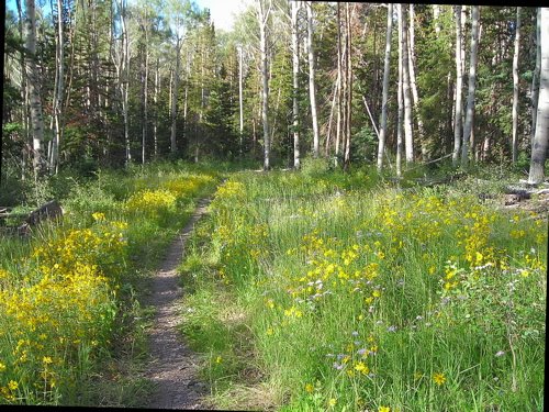 on the final descent, i was honored and thrilled to show my Sensei a brand new mountain biking trail – another of the fabled Flagstaff Secret Mountain Bike Trails – that had just been completed a week or so ago. during one particularly sketchy and dangerous rock garden section, i looked up only for an instant so i could witness the superb descending skills of Sensei, hoping to perhaps assimilate via osmosis some of his talent for getting through this incredibly steep, rutted, rooted mine field of a boulder slope.