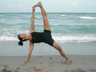 #1) Temple Manager Joy “Ananda” Kilpatrick finding her “comfortable seat” during Utthita Vasisthasana on Miami Beach.