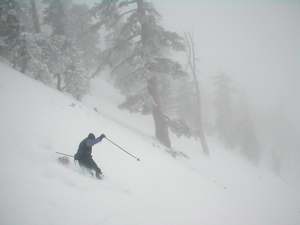 Photo 2) Ananda took this amazing shot of me while navigating ultra thin conditions at Mt. Baldy, CA