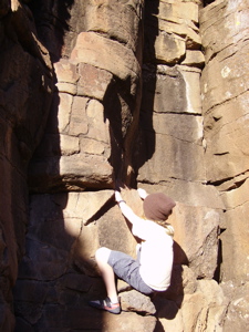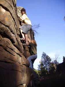 that is 9-year old Josh bouldering above his older brother by five years, Justin.