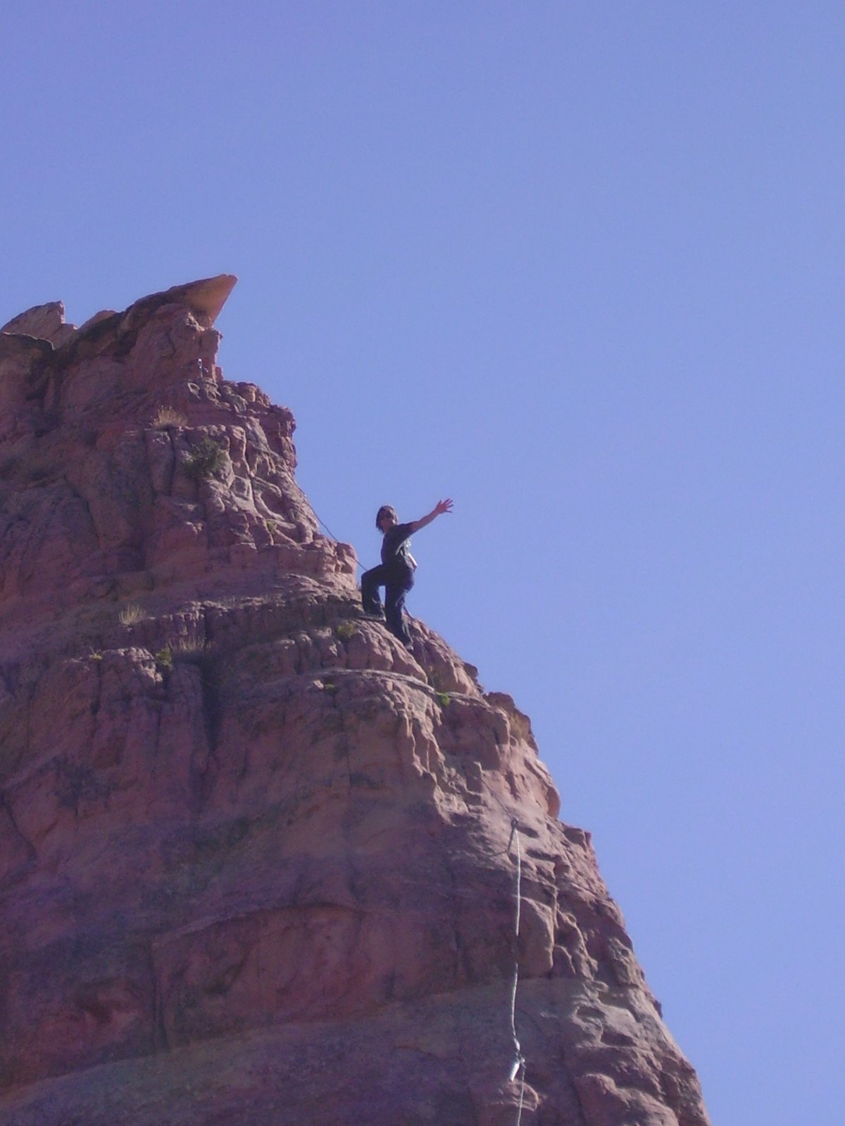photo 2) i found this fantastic ‘cable route’ up a sandstone pillar near Window Rock, Arizona the other day. i scampered up it rejoicing in my memories of my former profession of climbing while Ananda, who took the photo, calmed her nerves by reciting the Sacred Mantra.