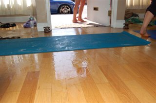 photo 1) my HP Yoga Mat, floating in my “Wholy Water” which i spilt at my HP Yoga Master Class in LA.