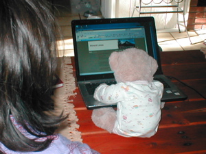 As reported in DL this week, my love affair and practicing baby stuff on Teddy has sparked a worldwide interest in the questions, “Who exactly IS this Teddy?” and “Where did he come from?” not to mention, “To whom does he belong?” Bending to the overwhelming public pressure, the crack DL Staff (me) is negotiating a DL EXCLUSIVE INTERVIEW with the mysterious and adorable Teddy of Two Tree Manor! Shown above, Teddy and Ananda share an early morning reading of DL to stay on top of what matters most; FAME!!!