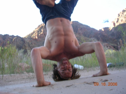 draining the lactic acid out of my legs via sirsana padmasana (full lotus headstand) at the bottom of the Grand Canyon; photo by Craig ilg.