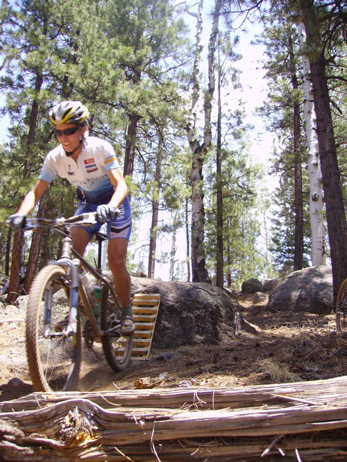 Jen caught in a ‘dab’…meaning, she put her foot on the earth to prevent falling. mountain bikers will ‘session’ a section like this, trying to ‘clean it’ in the way a dancer must rehearse choreography. however, unlike dancers in a nice studio, the mountain biker must rehearse choreography that often results in going down hard. Injuries and blood letting and expensive bike repairs are all part of this Bardo Training!