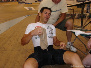 Coach’s note; on the concrete Olympic Velodrome in Dominguez Hills, CA, it was deep honor to help Michael “The Hammer” Secrest to a new 24-hour world cycling record. my account of that tremendous day, so inspiring to witness, is in the DL Archives. Warrior Brother Secrest has taken another pilgrimage unto what surely must be the most excruciatingly painful test of the human spirit; round and around a tiny velodrome for 24 hours, going as fast as possible, urinating into a catheter, overcoming Buddha-like intensities of sitting sores, chafing, hot spots on the feet, and the postural fatigue of each and every muscle on the body; yet the pedals must be kept spinning at a precise and constant Mile Per Hour in order to break the world record. Throughout the years, Michael and i communicate; speaking mostly of Dharmic things and explore with each other the insights derived from the ultra purity of world class endurance intensity.