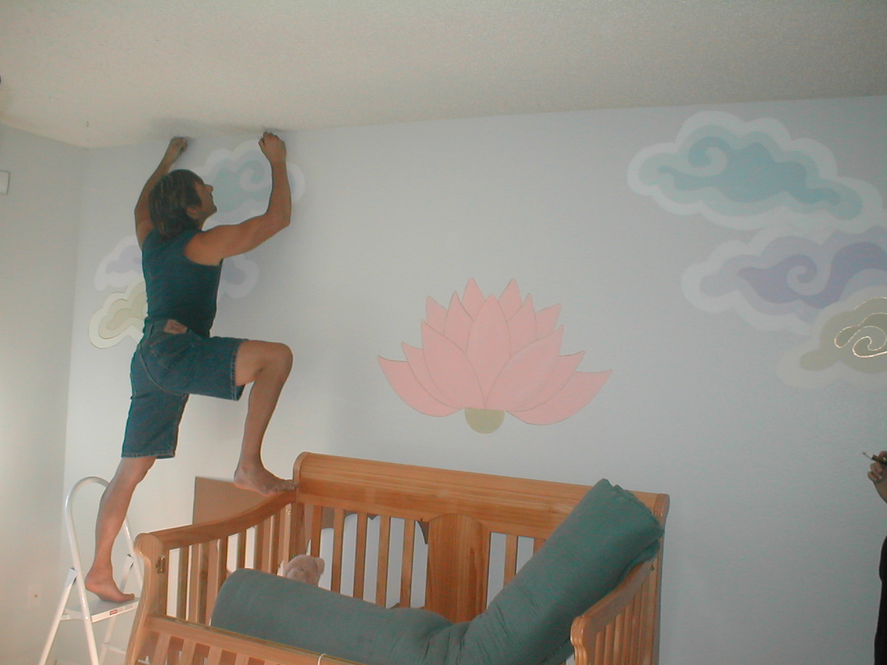 * design of baby’s room wall mural by coach and Ananda. artistry provided by most beautiful artist Tamara.