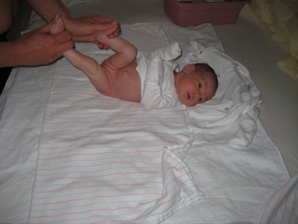 2) Never too early to start exercising; here Amma puts Dewa through some yogic wind-relieving postures and leg extensions. Although Dewa has Her own personal mantra and Her cells are being saturated by kirtan chants, Dewa prefers to exercise to good ol’ Rock n’ Roll!