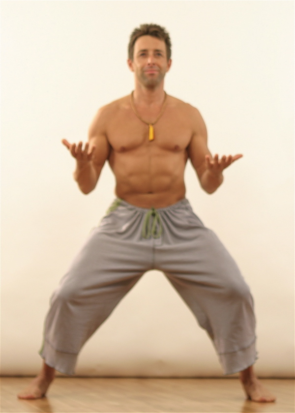 photo by Wayne Williams of coach in a gentle version of “The Foundation” one of the Ai Imawa Postures used in Wholistic Fitness as a form of Active Meditation. Order coach’s book: