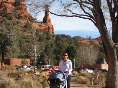 photo #3: Ananda and Dewa strolling beneath the rock formation of First Woman, Boynton Canyon.