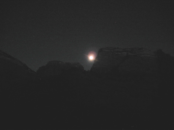 photo #2: Grandmother Moon in her “Cold Moon” garb of yesterday night’s solstice, rises between two Red Rock buttresses very close to First Woman rock formation in Boynton Canyon.