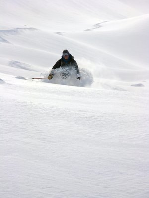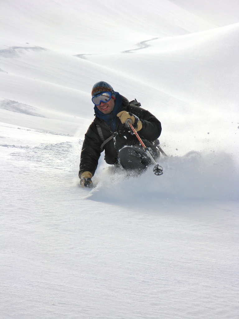 WF Student John Devlin gettin’ devilish with some fantastic telemarks in a secret stash somewhere in the North Cascade backcountry (he ain’t tellin’ exactly where cuz he’s smart…however, he has promised this newly crowned State Champion a private tour! Ha!). this and following photos by;Merle Kirkley