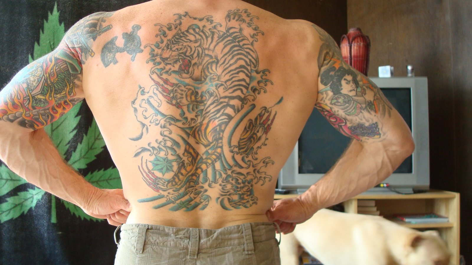HP Yoga Devotee, Jerry Albei of So Cal, sent into Tribal Headquarters these pics of his killer tat…