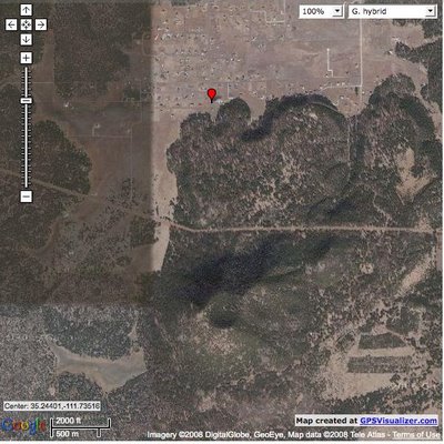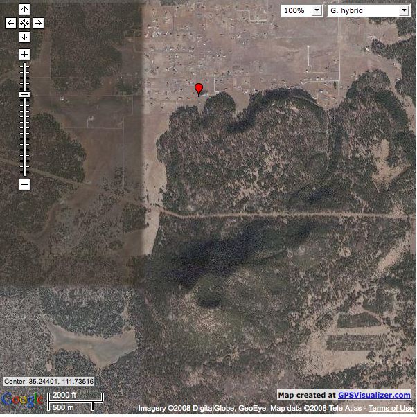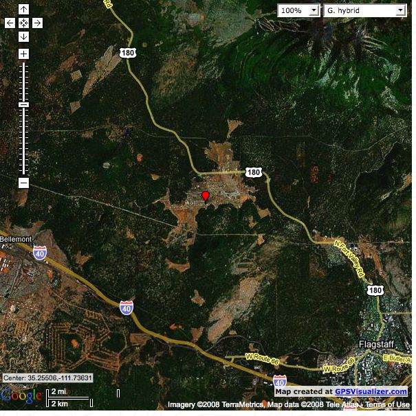 the red balloon shows our distance from the town of Flagstaff shown bottom right in GPS pic; we’re about 10 miles northwest on Highway 180; the route to the Grand Canyon.