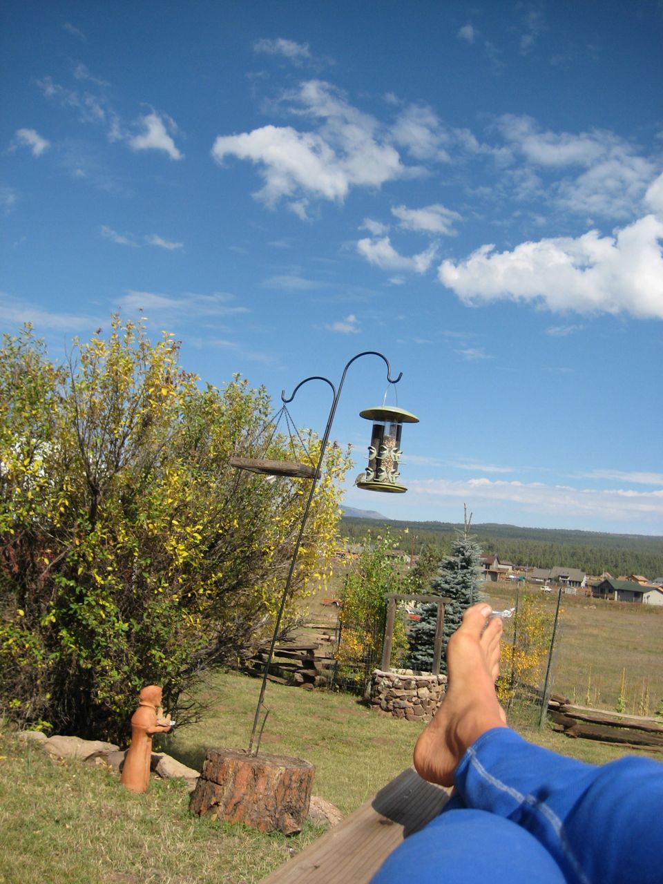 i situated St. Francis Assisi on the east side of our h(om)e, so he can once again face the Sacred Peaks which bear his name: “San Francisco Peaks”. The patron saint of animals, i placed him right next to my bird feeders which are busy from dawn to dusk with over 12 species i’ve ID’d so far!