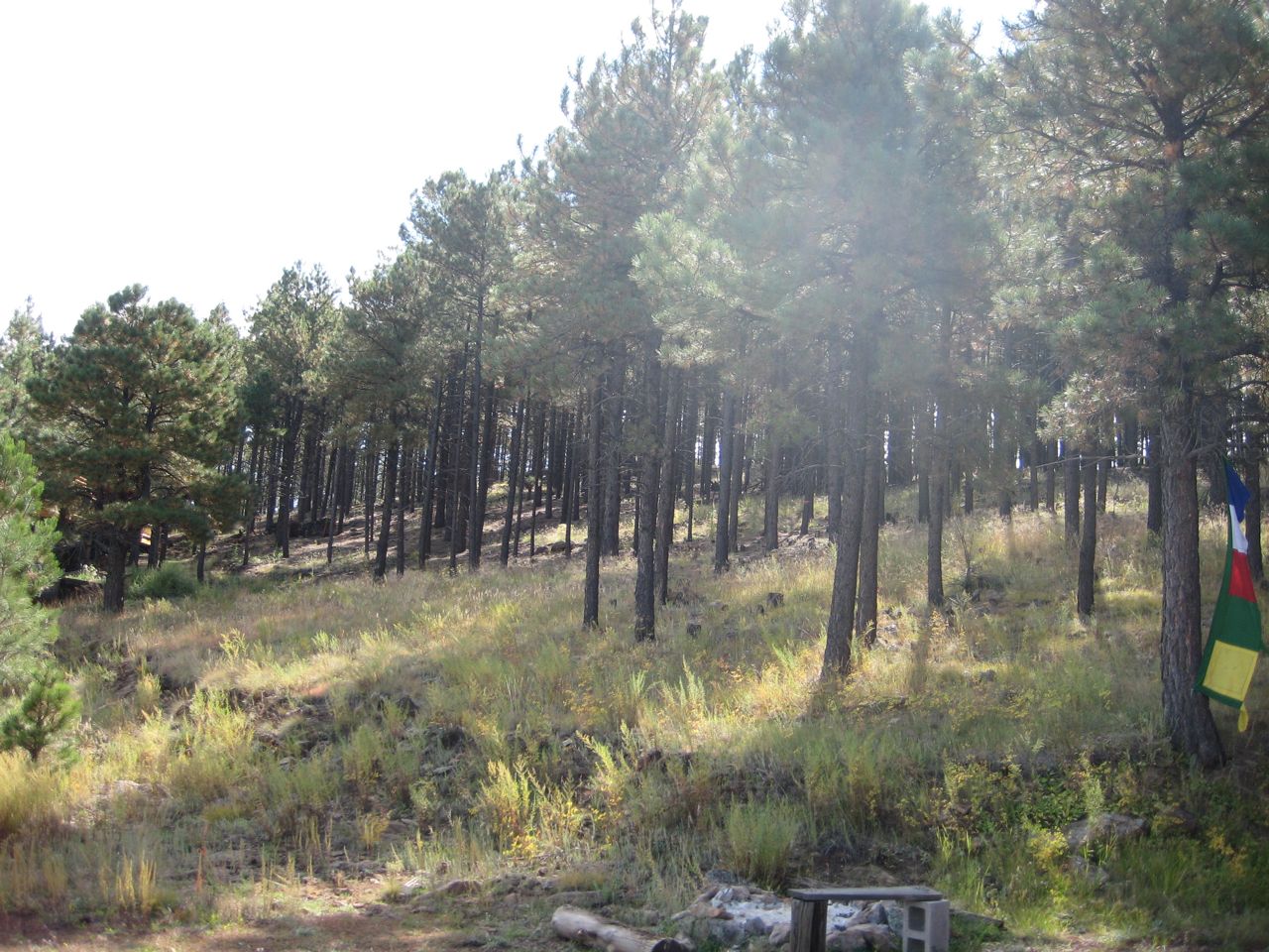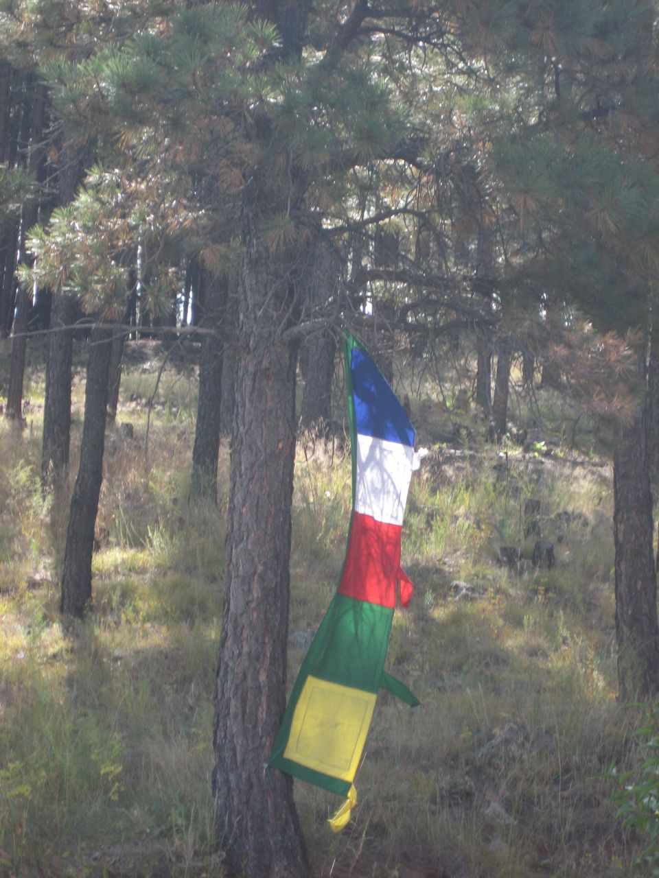 Tibetan Dharma Banner flies the empowerments of WindHorse, Amitabha Buddha, Green Tara, White Tara, Medicine Buddha situated in direct chi line with the summit of Doko Oosliid