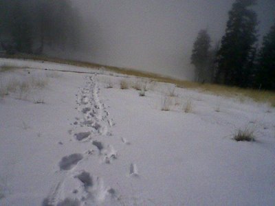 to crank up 2,000 vertical feet of ankle-twisting babyheads, cinder chunks, and underbrush covered by only 6″ of snow just to nab the First TRACKS of the Ski Season up at the local Ski Area! i summitted in 59:29…sprinting at a 185 bpm heart rate in order to reach the top in less than an hour.