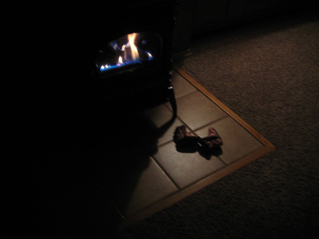 One of the many new sights my 46 year-young eyes are thus unaccustomed; my Precious Daughter’s snow boots drying by (one of) our fireplaces.***