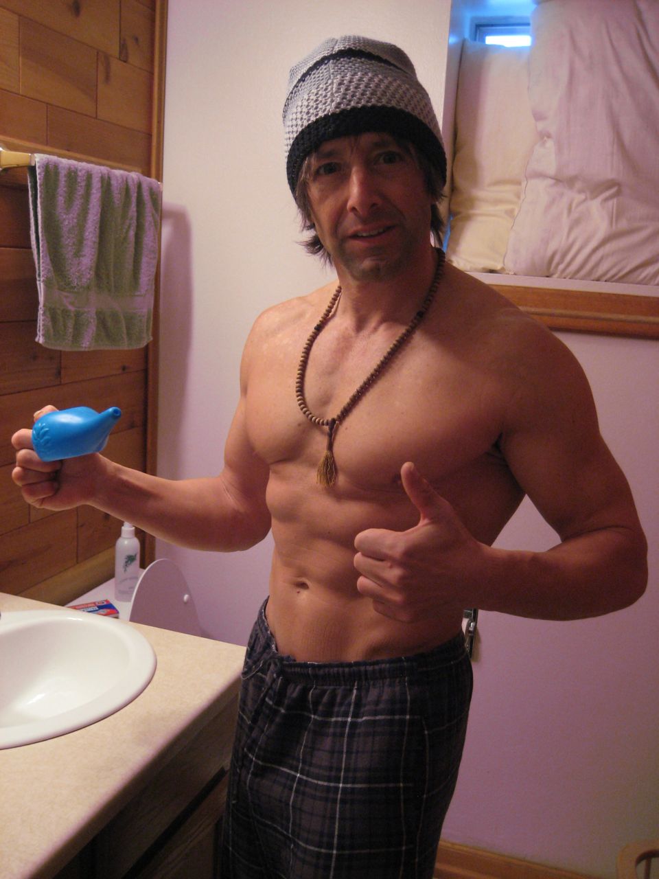 test photo #2: the morning of Sunday’s State Nordic Championships, doing Neti (Nasal Washing) as per part of my Early Morning Ritual DVD.