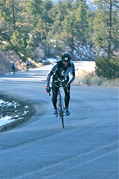 Test Photo #4: finishing just off the lead pack at the end of the Bike Up during the Mt. Taylor Winter Quadrathlon the Saturday before last. photo by Bruce Nagaan.