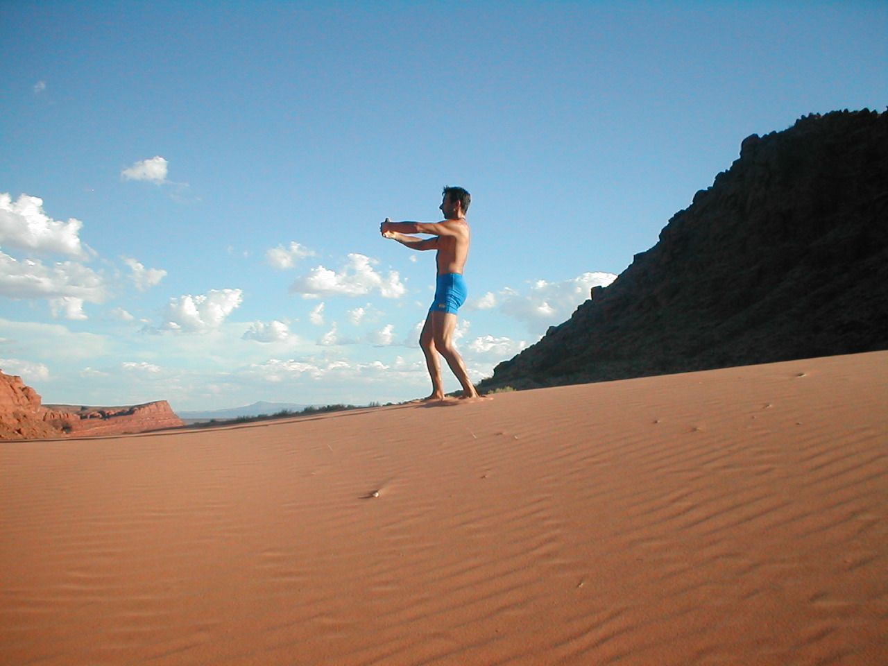 slow flowing through the Taoist Yoga Postures, known as “Ai Imawa” as taught to me by Sensei Kishiyama. An updated version of my book, AI IMAWA: The Postures and Practice of Inner Harmony is being worked on along with a DVD. The above posture is, “Awakening The Spirit,” location; Snow Canyon, Utah. Order your copy of Ai Imawa this month and receive $5 off!