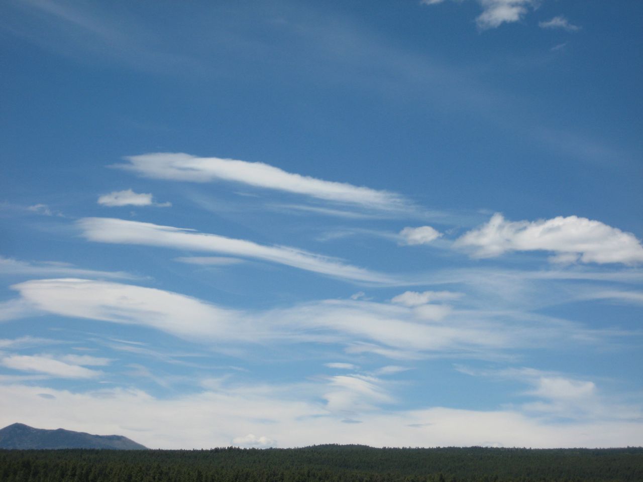 This evening the cloudscape is scarce…some long, lingering fingers of cirrus punctuated by a spackle of leftover cumulus out beyond Kendrick Peak, hovering over the Grand Canyon. ilg can hear the Canyon Wren’s goodnight call from here.