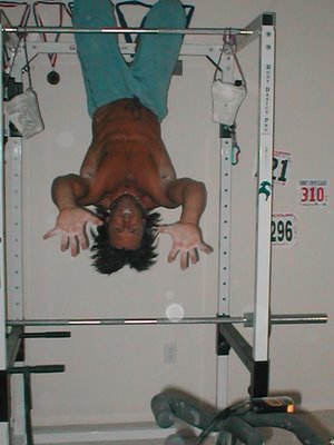 often, steering the helm of America’s Original Transpersonal Fitness Service is sad and hurtful, even though constantly deeply sacred. Sometimes, steering of the humble Helm is best done by turning my training upside down so i can see from the inside out what it’s like not to have a lifelong Path of Soul firing your every fiber. ilg feels only compassion for the many who attempt to copy the Path of WF. photos 1) WF Bumper Sticker available in the Pro Shop. graphics on this great sticker devoted by WF Devotee Brad Gantt. 2) Free hanging Inversion Crunches; an old ilg standard. by Ananda.