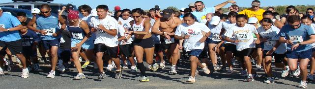 i cannot say enough about this race. it ain’t a race…it’s like Imogene Pass Run…it’s an American Pilgrimage and it is deeeeep honor for me to do my best to participate in and promote this race. Race Director Juwan Nuvayokva – the Hopi Harrier – himself runs an absolutely exquisite venue amidst this impoverished mesa top that has been off the grid an eon before a ‘grid’ was even a glimmer of a thought. Juwan, a State Champion and now coach alongside my Hopi Father, has 20 State HS Championships to his credit. He starts organizing this race one year before Race Day and now in its 4th year, saw 148 racers toe the Start Line. Juwan knows full well the brunt of brutality that faces his Hopi Lineage…he was born and raised at Old Oraivi and man, if you could see the smiles on the kids faces as he hands out shoes and school supplies from Sponsors like Saucony and Walmart, you’d feel your heart skip a beat. This race is BIG MEDICINE for a Tribe that, like my Beloved Tibetans, possess an incredibly deep spirituality and because of their go(o)dliness, just keeps getting the you know what kicked out of them…politics slay their attempts to live in the White Man’s World, drought caused by White Man’s global warming is a serious threat as the aquifers now retreat below the level of their aged pumps and cisterns. Eating White Man’s “food” has caused obesity and disease among generations of Hopi and it is so deeply touching to see these brave people’s attempts at curbing this horrible Tribe-Wide pandemic of deadly dis-ease. If there was one race i’d like you to share with me, it would be this one. Juwan told me he is prepared to host 1,000 racers. I Trust him. i want you here, next to me on his Start Line, next year. It’s only 8k. i Know you can do it. There is also a 2 mile walk/run as well.