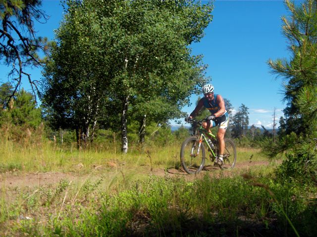 photo of coach racing at Pagosa Mountain Duathlon last month, shortly before a high-speed crash. coach went on to win by a 20-second margin. photo by Tom Steen