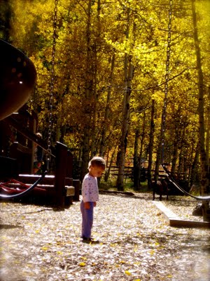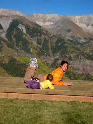 Telluride’s Town Park which offers the general public access to swimming, duck/fish pond for kids, two kids playgrounds, creeking, baseball, camping, horseshoes, showers, ice rink, indoor soccer, and i forget what all else dovetails directly into Bear Canyon; a world class leaping off place for ultra beautiful backcountry experiences. Muir woulda been proud. Dewa doing laps on the baseball diamond field. we’d reach one side and give, “THREE CHEERS FOR HAPPY FALL!” and run back across! photo yesterday by ilg.