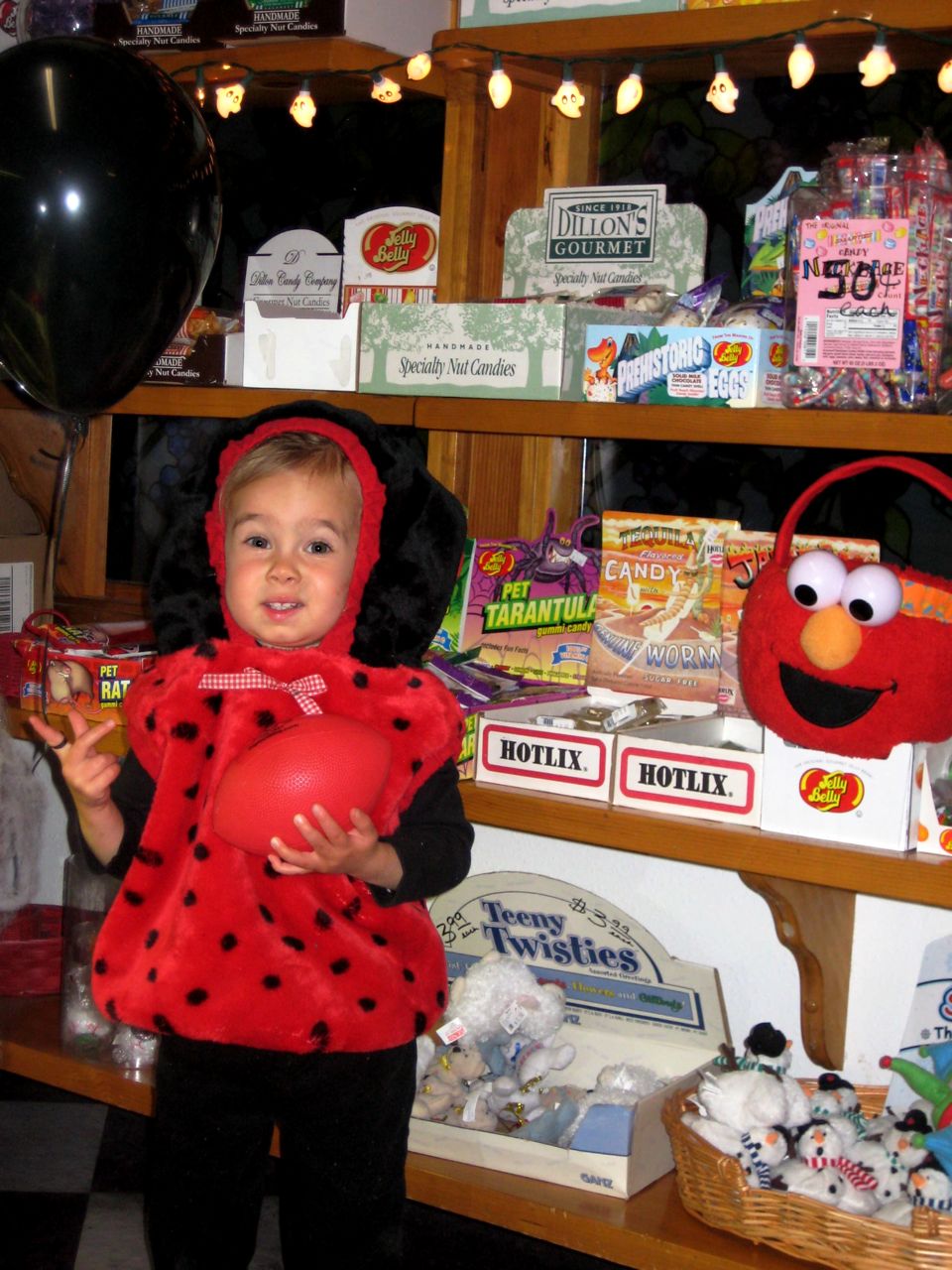 being placed in her Elmo trick-or-treat handbag. not once did She even bother