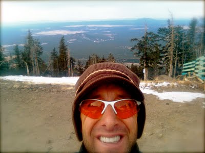See that smile? That’s at 11,500′ on Agassiz Peak, in the wind-blasted summit snow areas on photo number one…you know why ilg is smiling (besides the fact that behind me is HP Yogini Julie experiencing her first ever snowshoe hillclimb)? Cuz there is a BLIZZARD moving in! the WF Temple H(om)e sits right at the top of Northern Arizona…we anticipate 50+ mph winds and perhaps up to 3 feet of snow! Now, the grid is a bit elementary up here, so if you don’t hear from me for a couple of days, you know where i’ll be…