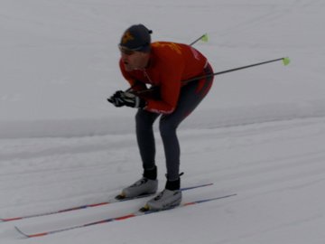 upon reaching the false flat, i could see that Clay was diagonal striding. this was my Ilg Moment and i seized it; i channeled Petter Northug from Norway and calling upon all my HP PROP WORKOUT® fitness, i dug deep into my core strength and pummeled away the snow, churning my arms up and down in a Double Poling technique instead of kick-and-gliding. Time came for me to cash in on my upper and ab strength! with heart rate hammered, my piston bullying on the long uphill was paying off; i got close enough to Clay to hear him breathing.