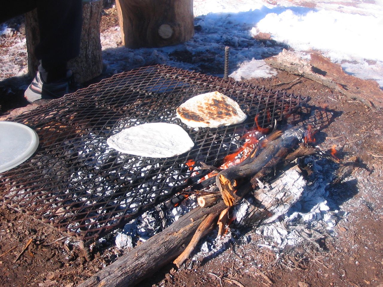 I also thought that I would share another pic titled “recession buster”. It’s a pic of my mother’s outdoor grill. A rickety-piece of mesh-metal that stands over hot coals and heats up homemade bread. One of this Warrior’s delights, mom’s homemade bread! No Betty Crocker utensils here!