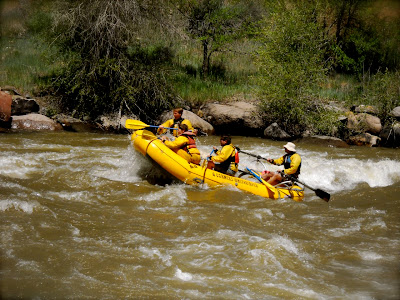 that’s Ananda…right up on the helm…typical spot for a Marine’s daughter…look at that elegant, flat spine as she Meets The Dragon!…approaching the Smelter Rapids on Friday…river is running close to 5,000cfs!