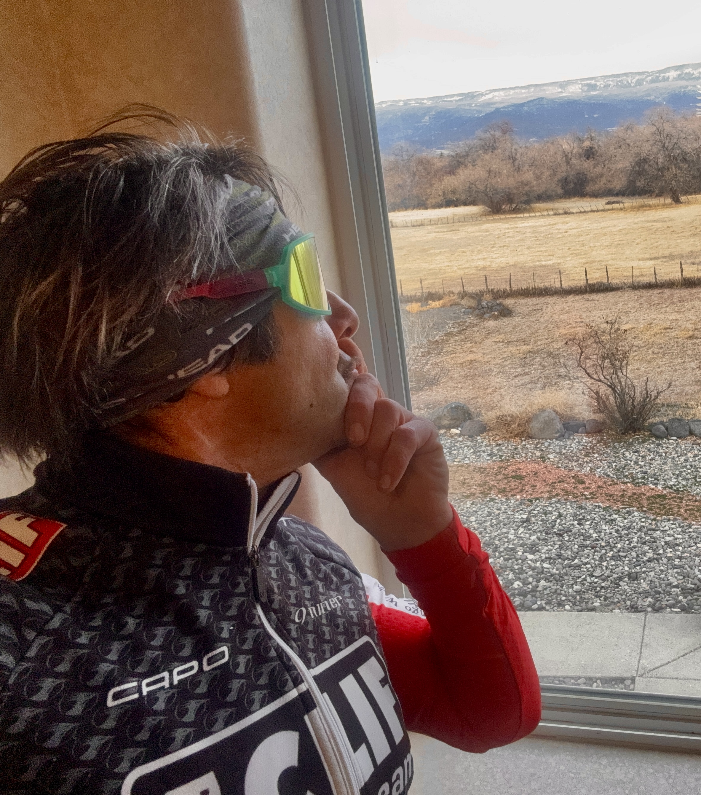 this morning at Cedaredge Motel (ele; “6230′) gazing up at the race venue on Grand Mesa (ele; 11,237′)…