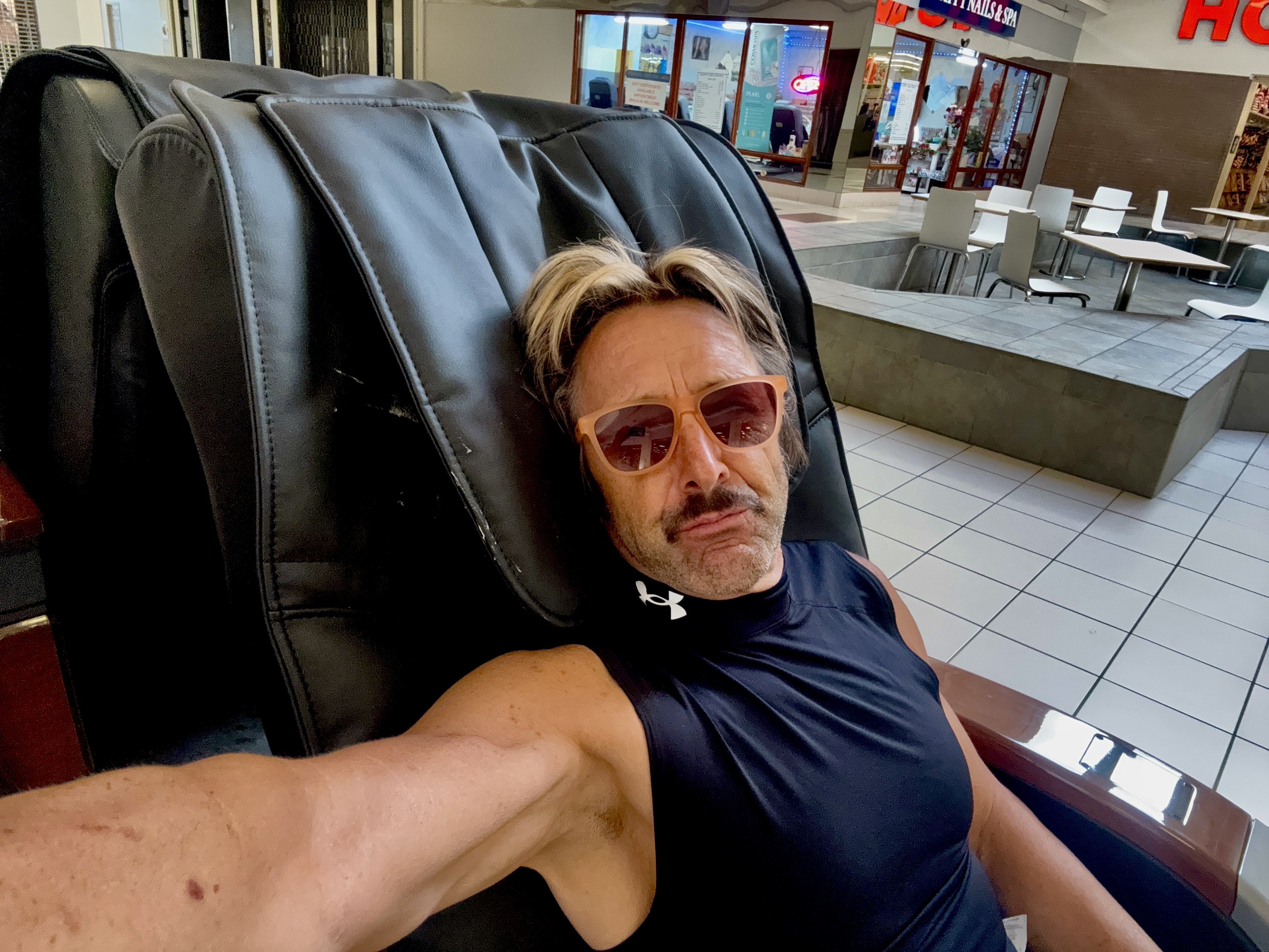 no way guys can keep up with girls (it seems in feeble ilgs life) when it comes to Mall Shopping… pic above: Sandra buys feeble ilg a 21 minutes AMAZING (gotta say) chair massage… omg… wish my own bodywork efforts could be as mechanically orchestrated as this chair, yet? gonna be a while before any AI/Robot can provide the world class healing bodywork massage that ilg is privy to courtesy of the Amitabha Buddha Lineage… just sayin’,..