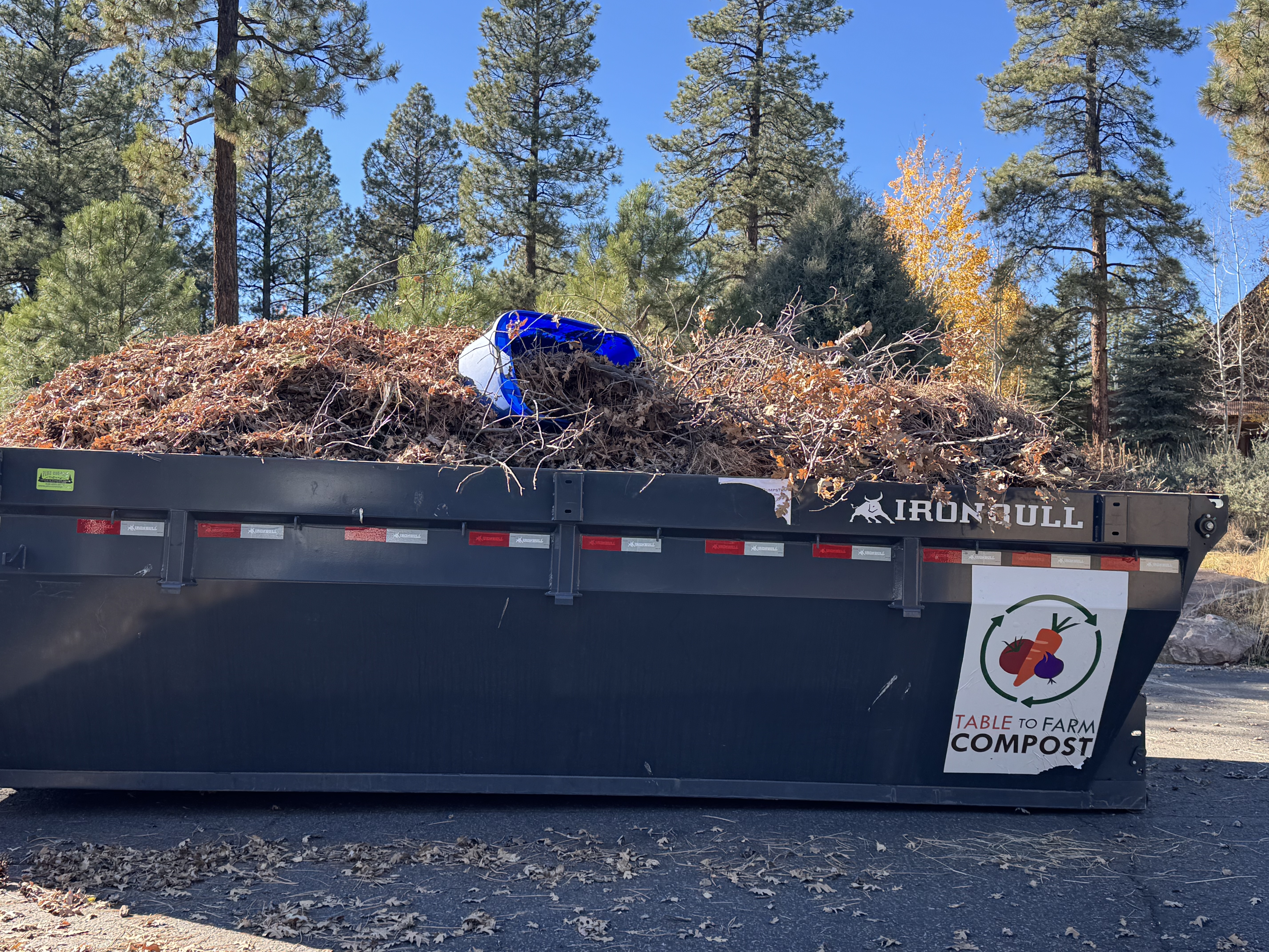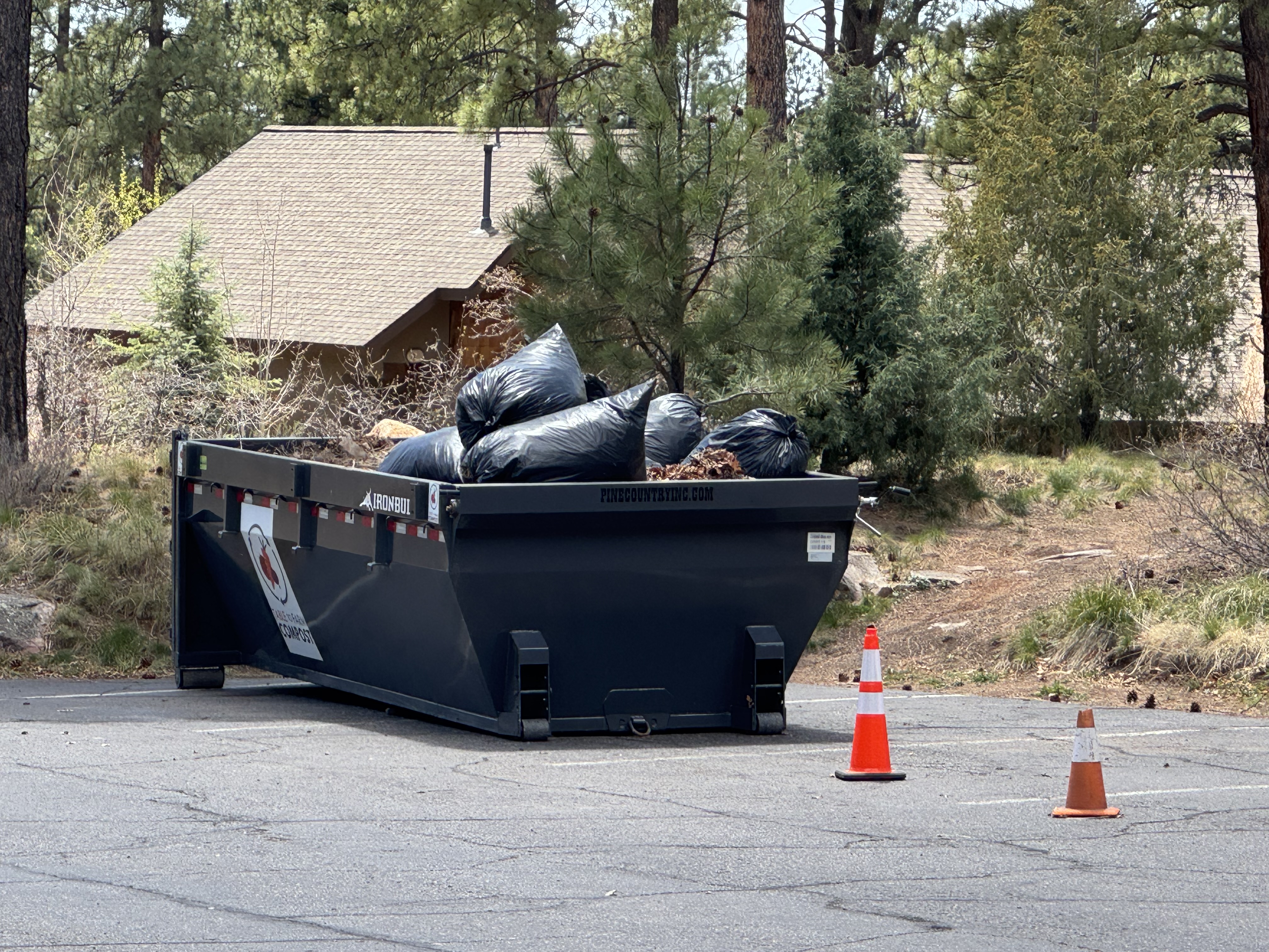 Pine needles and pine cones, mostly. A third container located in the western aspect of the community takes basically everything from concrete to metal debris.