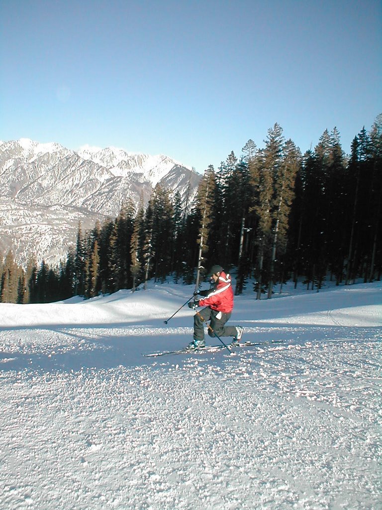 Here i am laying some heavenly tele turns on Upper Hades, a run that we used to race Super-G on! We spent the afternoon skiing our hearts out and you shoulda seen no-ligaments-in-her-knees Ananda just CRANK!!! First time out for her this season on the alpine boards and she threw down over 8,600 vertical of pow like she was Bode-friggin’-Miller, baby! It made my heart smile so much to share this home away from home of my childhood with her. It made my Soul smile as well; There we were; one yogini without knee ligaments, and another yogi with a broken back and smashed pelvis. Both Ananda and i were told by the experts that we would never be able to enjoy outdoor sports.