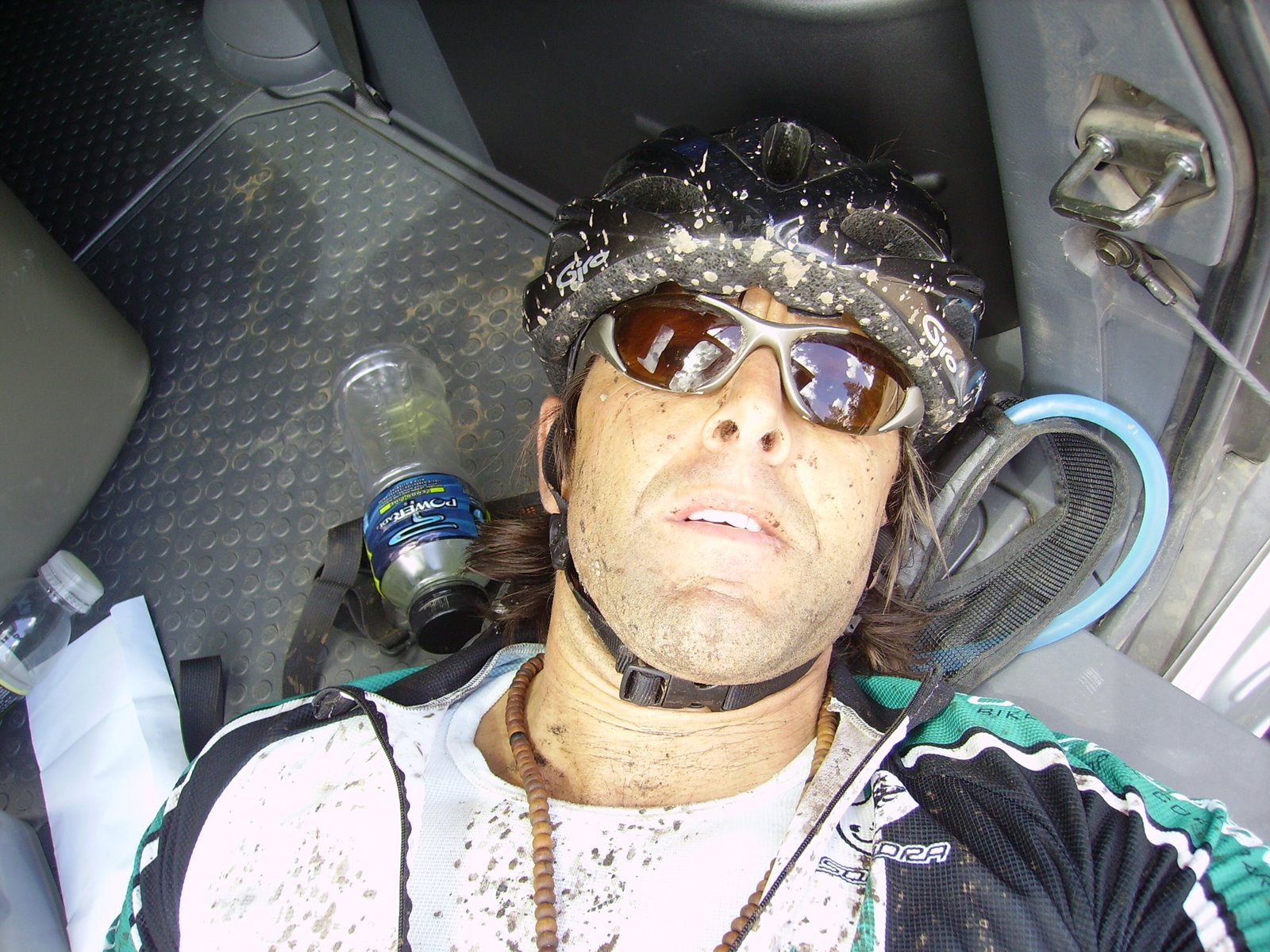 photo 2; a self portrait of suffering finished. after nearly 6 hours and 53 miles of high altitude “asana and pranyama…High Performance Yoga style” i lay on my tailgate, utterly exhausted, blissful, muddy, and full of pain.