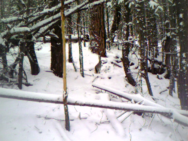 #2) Grandfather Jack Rabbit (center in photo). i have GOT to stop watching “SURVIVORMAN“…still intact after all these years away from my extreme mountaineering days, as i was shoeing up this technical, entangled slope i keep seeing Big Cat tracks in the snow. my feeble Mind started playing games with me; feeling mountain lion perched in all the big snags and ponderosas above and near me. more tracks = more mind games. i was alone; i was vulnerable. my ego wanted to turn around. my Heart wanted the summit. better to die in the fangs of a Mountain Cat than turn around like a sheep and run home. my Sixth Sense, however, was reaching a crescendo; my skin flushed and my sushumna became icy as if in the First Entry of the Bardo…i KNEW a puma, a mountain lion, a mountain cat was staring me down…but WHERE? Just then, to my left as i stepped my snowshoe over another fallen tree; this beautiful, huge, Grandfather Jack Rabbit scared the living begeezus outa this feeble mountain yogi…oh, the snare of Duality!!! i know nothing…Om Mani Padme Hung, i offered to the Rabbit Being. he and i then shared several wonderFull m(om)ents two-gether as the snow fell gently upon our conversation.